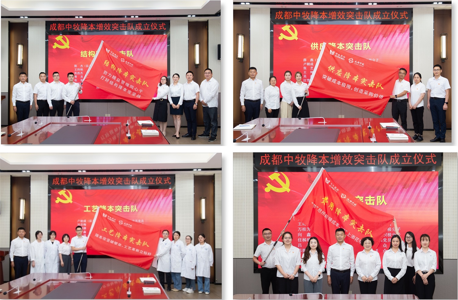 為貫徹落實中牧股份黨委下達的黨建工作任務,圍繞公司2025年“降本增效”工作主題,緊扣“提升、優化、創新”主基調,成都中牧成立“供應降本突擊隊”、“結構降本突擊隊”、“工藝降本突擊隊”、“費用降本突擊隊”等4支青年突擊隊,6月5日舉行授旗成立儀式。黨支部書記廖成斌出席儀式并授旗,全體中層干部及突擊隊隊員參加。